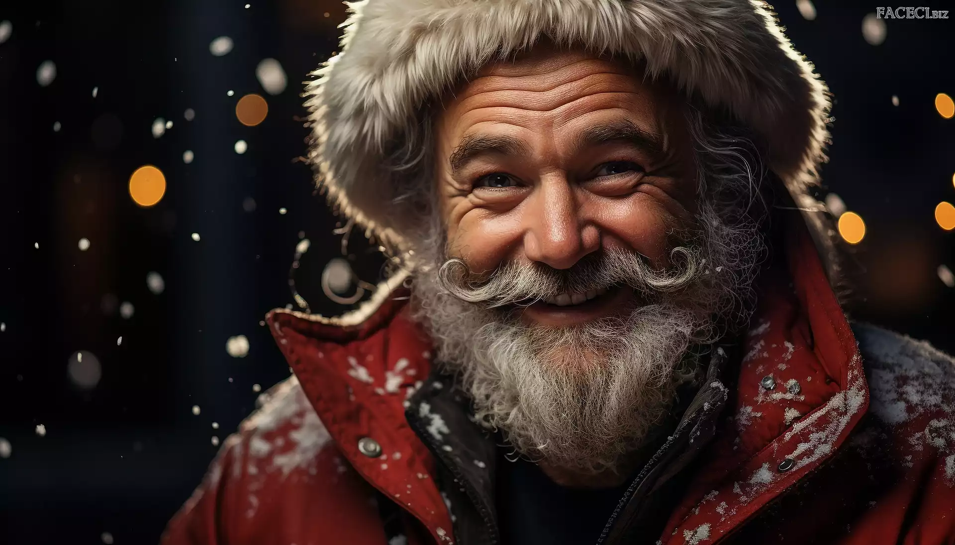 Kurtka, Uśmiechnięty, Mężczyzna, Czapka, Zbliżenie, Broda, Śnieg - faceci.biz